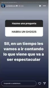 Uno de sus seguidores se atrevió a preguntar si “habrá un GH 2025″, por lo que del Moro no tuvo problema en admitir que ya lo tenía confirmado. “Sí, en un tiempo, les vamos a ir contando lo que viene”, comenzó a contar y aseguró que ese proyecto “va a ser espectacular”.